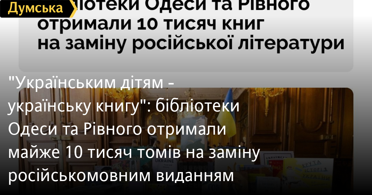 Так, одеським бібліотекам на заміну російським книгам передали понад сім тисяч примірників дитячої художньої літератури. Ще 2,5 тис. сучасних українських книжок вирушили до Рівного і будуть розподілені між бібліотеками громад регіону.