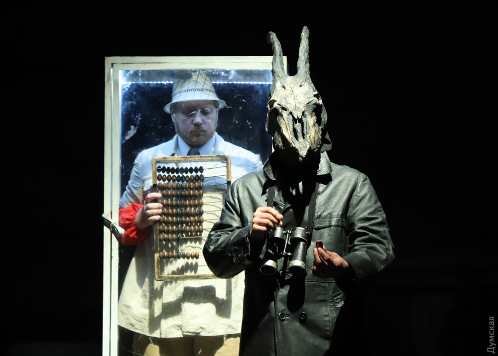 Главреж театра Максим Голенко предлагает поменять угол зрения на «Золотого теленка», в чем ему помогают автор инсценировки Алексей Доричевский, художница Юлия Зауличная, маэстро Вадим Бессараб, его маленький оркестрик и почти вся труппа театра. Не для слабонервных экипировали водителя «Антилопы-гну» Адама Козлевича (Анатолий Головань). В рогатом шлеме он водит машину-череп и крутит шарманку с католическими гимнами, видимо, возвещая аминь старому миру. На генеральном прогоне очаровали Остап Бендер и Шура Балаганов (заслуженный артист Украины Юрий Хвостенко и Александр Самусенко), даже хотелось пожелать им успеха в делах их мошеннических.