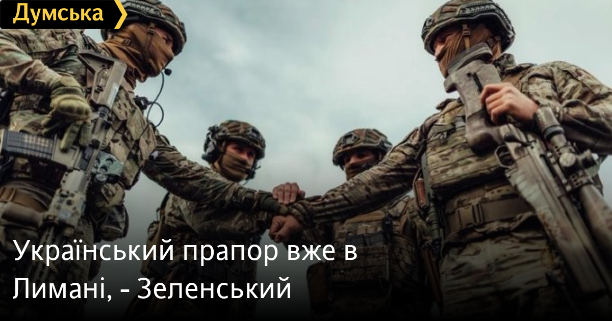 «Український прапор вже в Лимані. Там ще тривають бойові дії. Але там вже немає і сліду від якогось псевдореферендуму», — підкреслив президент.