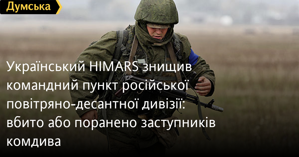 Четыре заместителя командира российской 106-й воздушно-десантной дивизии погибли или были ранены в результате удара украинской реактивной системы залпового огня HIMARS по командному пункту соединения.