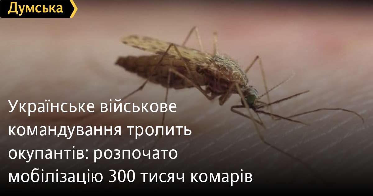 Українське військове командування тролить окупантів: розпочато мобілізацію 300 тисяч комарівМіністр оборони України Олексій Рєзніков іронічно обіграв божевільні заяви представників кремля про те, що в українських біолабораторіях нібито вирощують комарів-вбивць для знищення росіян. Вранці 8 листопада Резніков заявив про початок часткової мобілізації 300 тисяч комарів. «Проєкт має робочу назву «Москіти проти московитів«», — наголосив Рєзніков. Пізніше легенду розвинули у штабі Оперативного командування «Південь». У ОК закликали українців не вбивати комарів у квартирах та не фотографувати їх – «можливо це військовий підрозділ на ротації». СМЕРТЬ РОСІЙСЬКИМ ОКУПАНТАМ! Помітили помилку? Виділяйте слова з помилкою та натискайте control-enter |