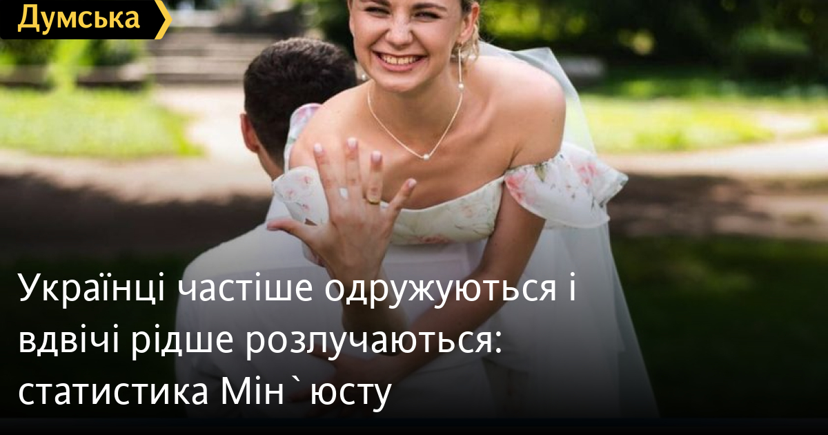 Майже вдвічі менше розлучень та більше шлюбів, ніж минулого року було зареєстровано в Україні за І півріччя 2022-го.Про це повідомляє Міністерство юстиції України.Так, органами державної реєстрації актів цивільного стану у І півріччі 2022-го складено 103 903 актових записів про шлюб і 7 632 – про розірвання шлюбу.Для порівняння за такий самий період 2021 року – 85 960 – про шлюб, 13 153 – про розірвання шлюбу.