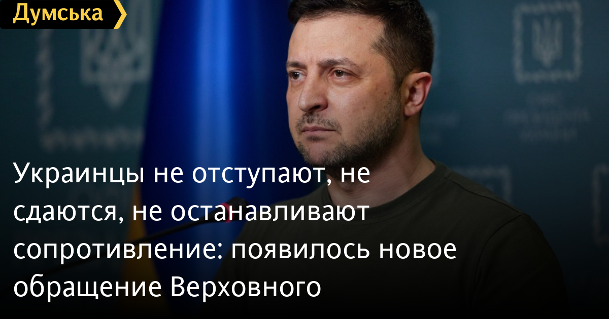 Украинцы! Во всех наших городах, городах Украины, куда вошел враг, почувствуйте это. Переходите в наступление! Надо идти на улицу! Выходите! Надо бороться! Каждый раз, когда есть возможность. Как в Херсоне. Как в Бердянске. Как в Мелитополе. Как в Конотопе. Надо выходить и гнать зло из наших городов. С нашей земли. Чтобы не сделали новые «ДНР» и «ЛНР», в которых нормальная жизнь просто невозможна. Только рабство. Только на коленях.