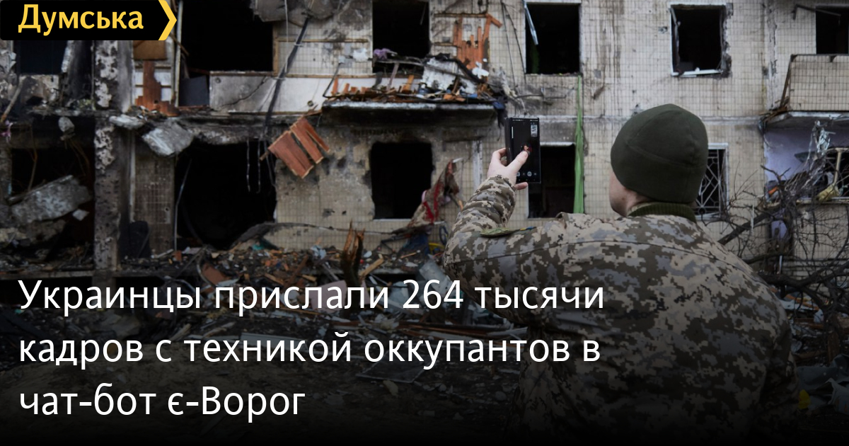 В чат-бот «є-Ворог», который заработал 10 марта, украинцы прислали уже более 264 тысяч кадров и данных о перемещении вражеской техники.