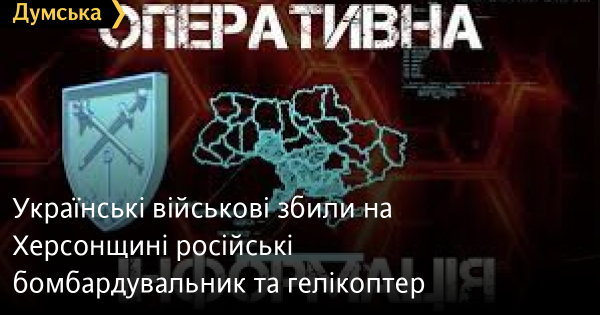 Бомбардувальник Су-24М та гелікоптер Мі-8 росіян знищили наші зенітні ракетні підрозділи в районі Давидова Броду.