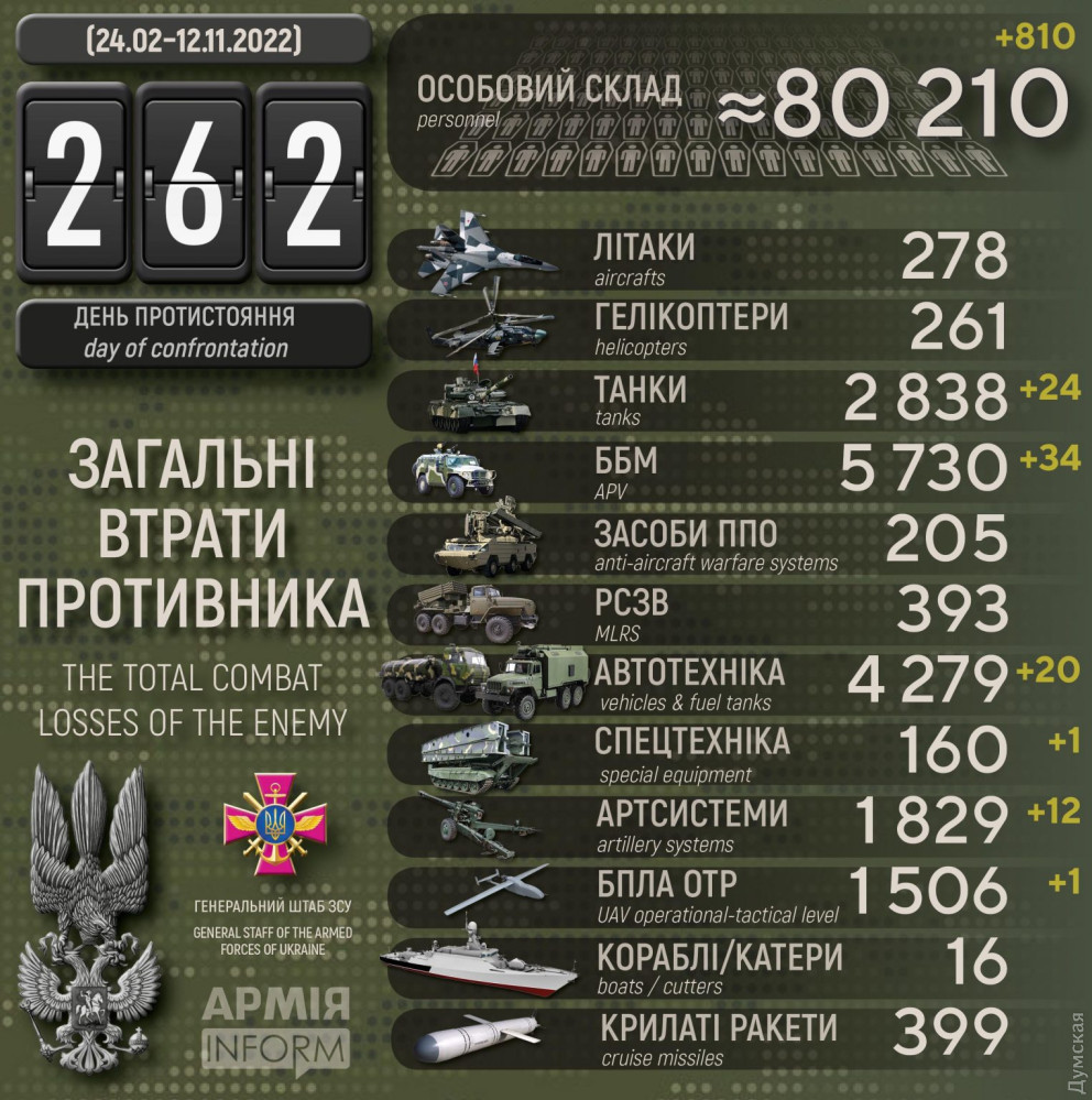особового складу ‒ близько 80210 (+810) осіб ліквідовано,