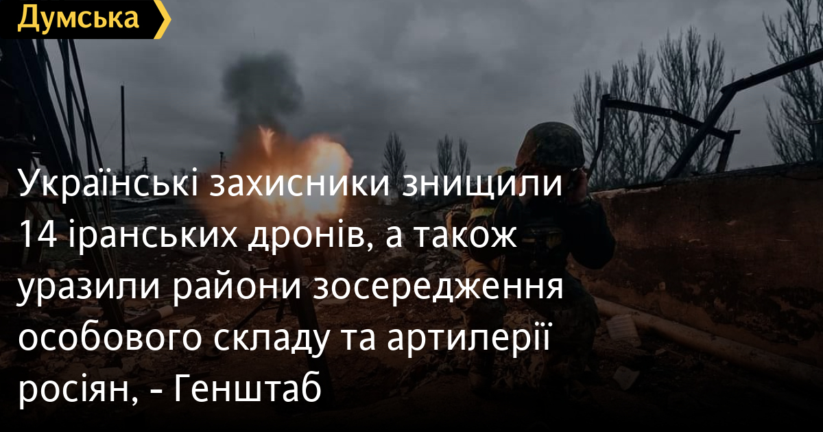 14 ударних дронів Shahed-13, а також три райони зосередження особового складу ворога та один — артилерії вразили Сили оборони протягом минулого дня.