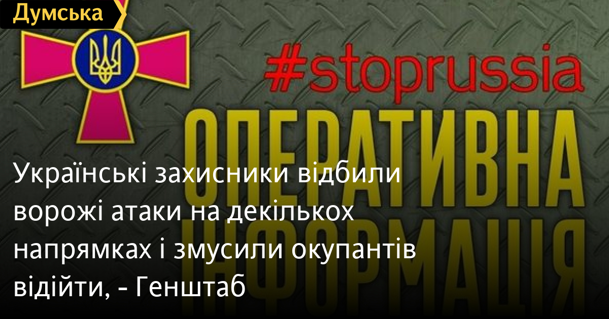 Як повідомляється в ранковому зведенні Генштабу, на харківському напрямку противник здійснював вогневе ураження із артилерії в районах населених пунктів Харків, Рідне, Уди, Дементіїівка, Слатине, Протопопівка, Нове, Золочів, Прудянка, Руська Лозова, Руські Тишки, Петрівка, Безруки, Борщова, Старий Салтів та Коробочкине. Пара ворожих вертольотів Мі-8 завдала ударів неподалік Старого Салтова.