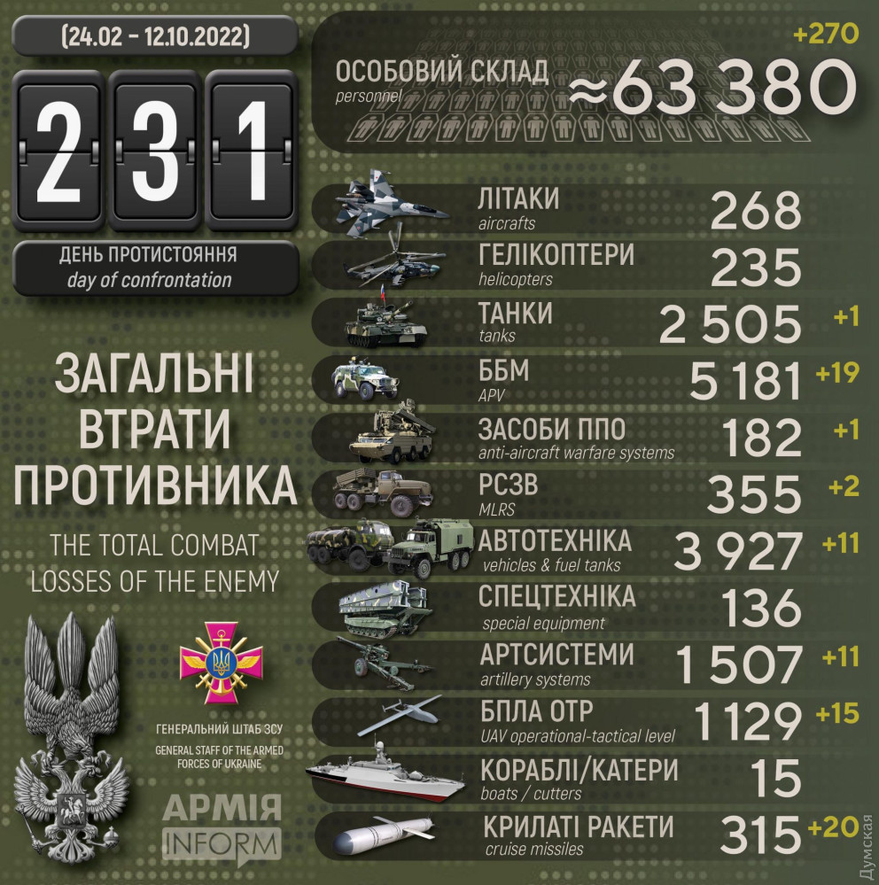 особового складу ‒ близько 63380 (+270) осіб ліквідовано,