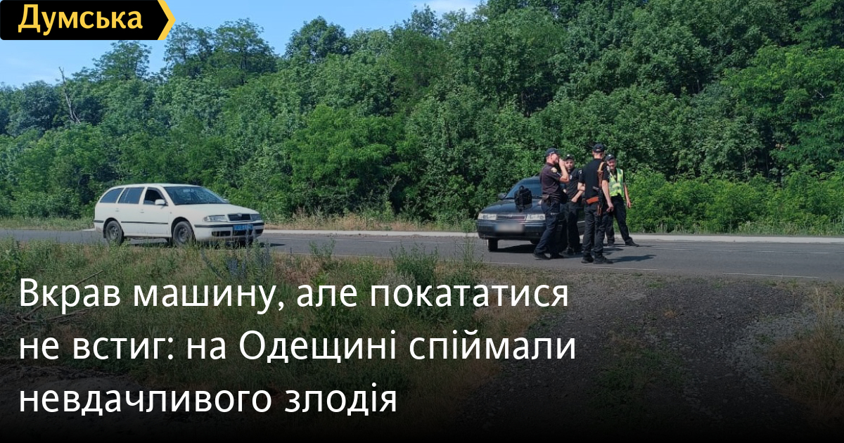 Вкрав машину, але покататися не встиг: на Одещині спіймали невдачливого злодія57-річного жителя Подільського району, який викрав автомобіль, але не встиг далеко заїхати, затримали правоохоронці. Як повідомили в обласній поліції, подія сталася близько шостої години ранку в одному з населених пунктів Ананьївської територіальної громади. Зловмисник скористався ситуацією, коли господар залишив легковий автомобіль марки «Богдан» у своєму дворі із ключем у замку запалення. Помітивши зникнення транспортного засобу, 47-річний чоловік звернувся до поліції. Невдовзі правоохоронці затримали зловмисника на викраденому автомобілі. Той, побачивши переслідувачів, кинув транспортний засіб на проїжджій частині дороги й почав тікати, але безуспішно. Відкрито кримінальне провадження за частиною другою статті 289 Кримінального кодексу України (незаконне заволодіння транспортним засобом). Фігурантові обрали запобіжний захід у вигляді тримання під вартою. Помітили помилку? Виділяйте слова з помилкою та натискайте control-enter Новини по цій темі: 29 липня 2025: В Усатово Одеської області сталася перестрілка: поліція працює на місці (відео, оновлено) 28 липня 2025: П'яний на "Ягуарі" або гіпертонік? Звільнений топ-посадовець одеської поліції хоче повернутися на службу 19 червня 2025: Дівчинку, яку шукали сотні одеситів, знайшли вбитою: поліція працює з чоловіком, ймовірно причетним до загибелі 27 травня 2025: Увели гектар в університету: на Одещині засудили земельних аферистів, але без посадки і Хвоста |