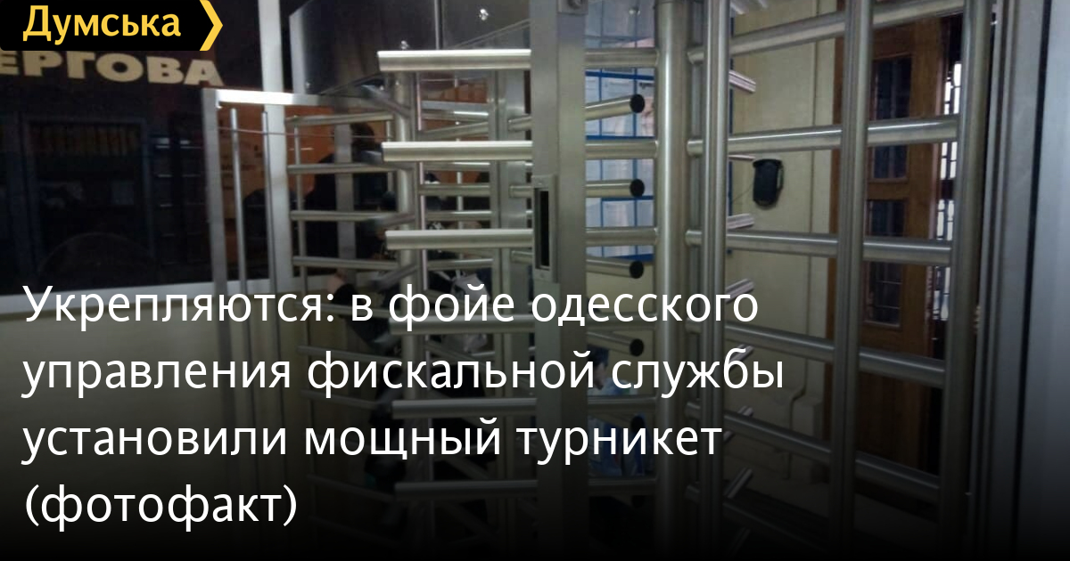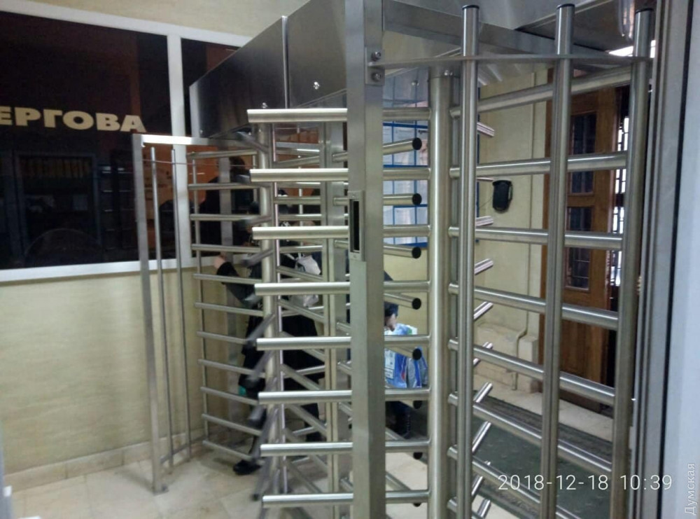 Мощный полноростовой турникет установили в здании Главного управления Государственной фискальной службы в Одесской области, что на Семинарской улице.