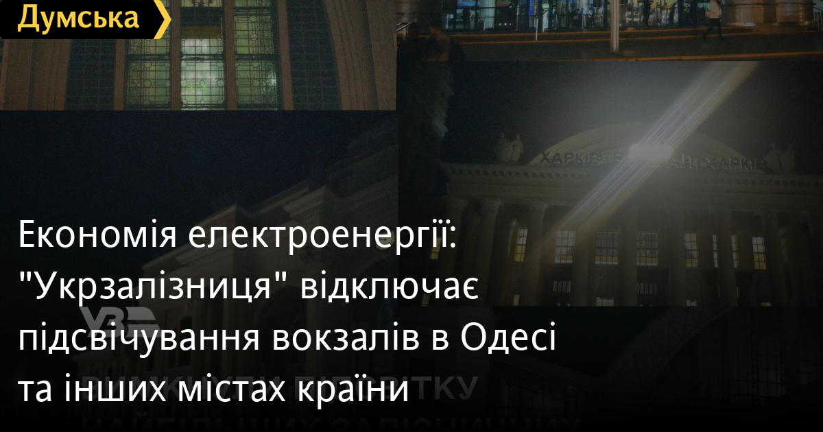 Економія електроенергії: «Укрзалізниця» відключає підсвічування вокзалів в Одесі та інших містах країниПідсвічування фасадів та окремих зон найбільших залізничних вокзалів у пікові години відключатимуть. Таке рішення ухвалено для економії електроенергії, повідомляє «Укрзалізниця». Йдеться про вокзали Києва, Одеси, Львова, Дніпра та Харкова. «У разі необхідності на вокзалах запрацюють пункти незламності, де будуть доступні альтернативні джерела живлення», — розповіли в пресслужбі підприємства. СМЕРТЬ РОСІЙСЬКИМ ОКУПАНТАМ! Помітили помилку? Виділяйте слова з помилкою та натискайте control-enter |