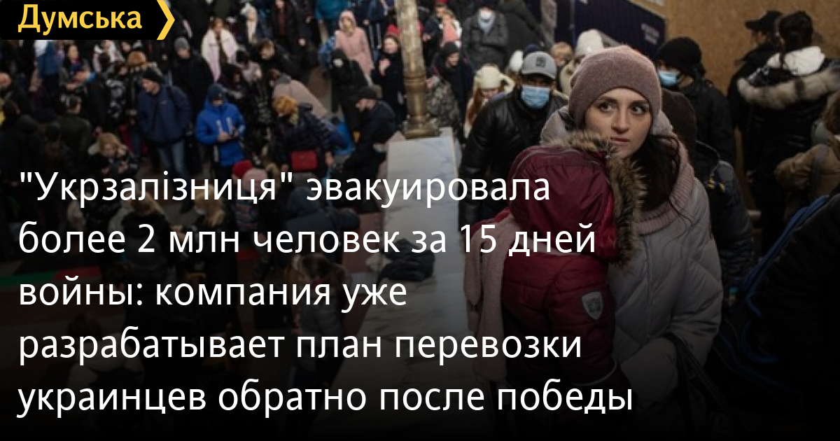 За 15 дней войны «Укрзалізниця» эвакуировала уже более 2 млн человек.