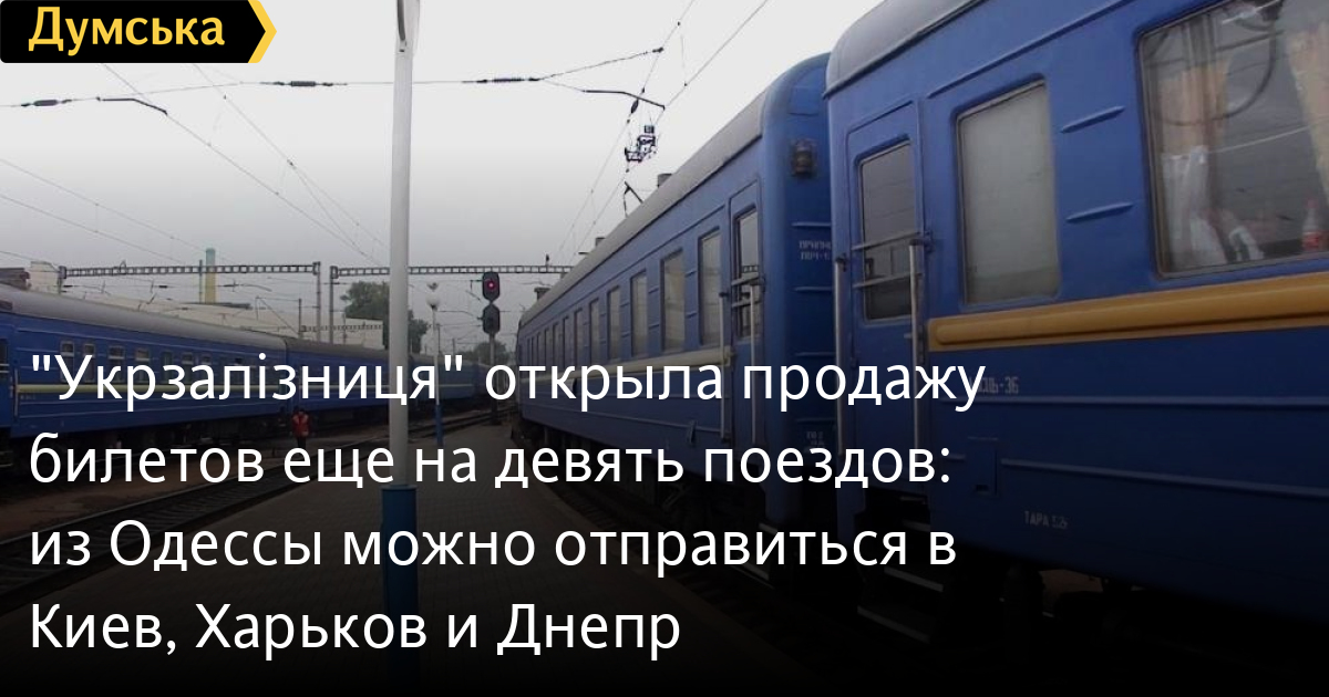 «Укрзалізниця» открыла продажу билетов еще на девять поездов: из Одессы можно отправиться в Киев, Харьков и ДнепрУтром 27 мая «Укрзалізниця» открыла продажу билетов еще на девять поездов, среди которых №8 / 7 - Одесса-Харьков, №20 / 19 - Лисичанск-Киев, №53 / 54 - Днепр-Одесса, №63 / 64 - Харьков-Киев, №105 / 106 - Киев-Одесса, №791 / 792 - Киев-Кременчуг, №81 / 82 - Харьков-Новоалексеевка, №125 / 126 - Киев-Константиновка, №10 / 9 - Киев-Мариуполь. Как сообщил министр инфраструктуры Владислав Криклий, продажа билетов открыта на 50% мест в поездах, кроме поезда №8 / 7 Одесса-Харьков, где продается 100% мест (согласно постановлению КМУ №392). Билеты можно купить онлайн или в кассах железнодорожных вокзалов, которые начали работать с сегодняшнего дня. Напомним, вчера стало известно об открытии продаж билетов на первые пять направлений по Украине: два поезда Киев-Харьков (№721/722 и №726/725), Киев-Одесса (№763/764), Киев-Константиновка (№711/712) и Киев-Кривой-Рог (№740/739). Сами поезда будут курсировать с 1 июня. СМЕРТЬ РОССИЙСКИМ ОККУПАНТАМ! Заметили ошибку? Выделяйте слова с ошибкой и нажимайте control-enter |