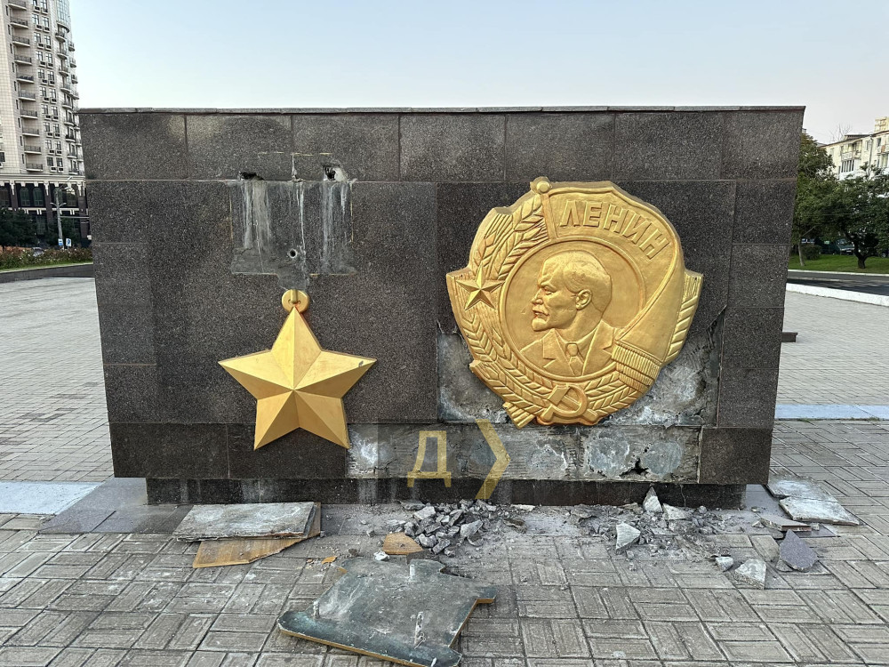 Барельєфи із зображенням Володимира Леніна і зірки міста-героя було пошкоджено на площі Десятого квітня.