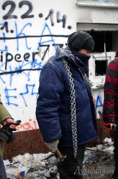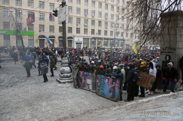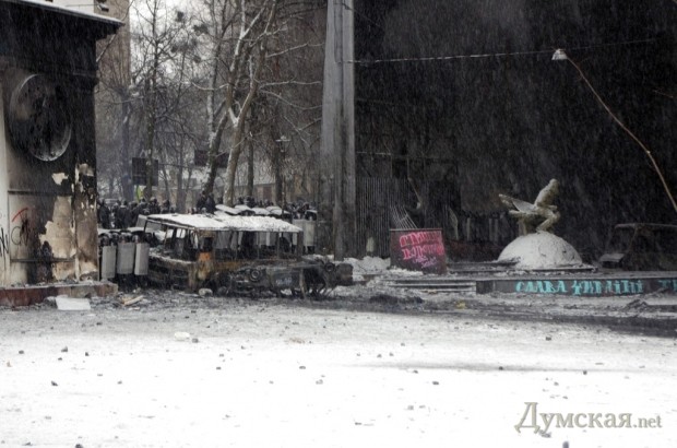 Наблюдая за происходящим, демонстранты обсуждают потери, говорят, погибли от трех до шести человек. Баррикады в это время продолжают укреплять и заливать водой. На Европейскую площадь в большом количестве привозят новые шины и пустые стеклянные бутылки. Очевидно, что протестующие готовы сражаться и держать оборону долго, но как разрешится ситуация, никто не берется судить.