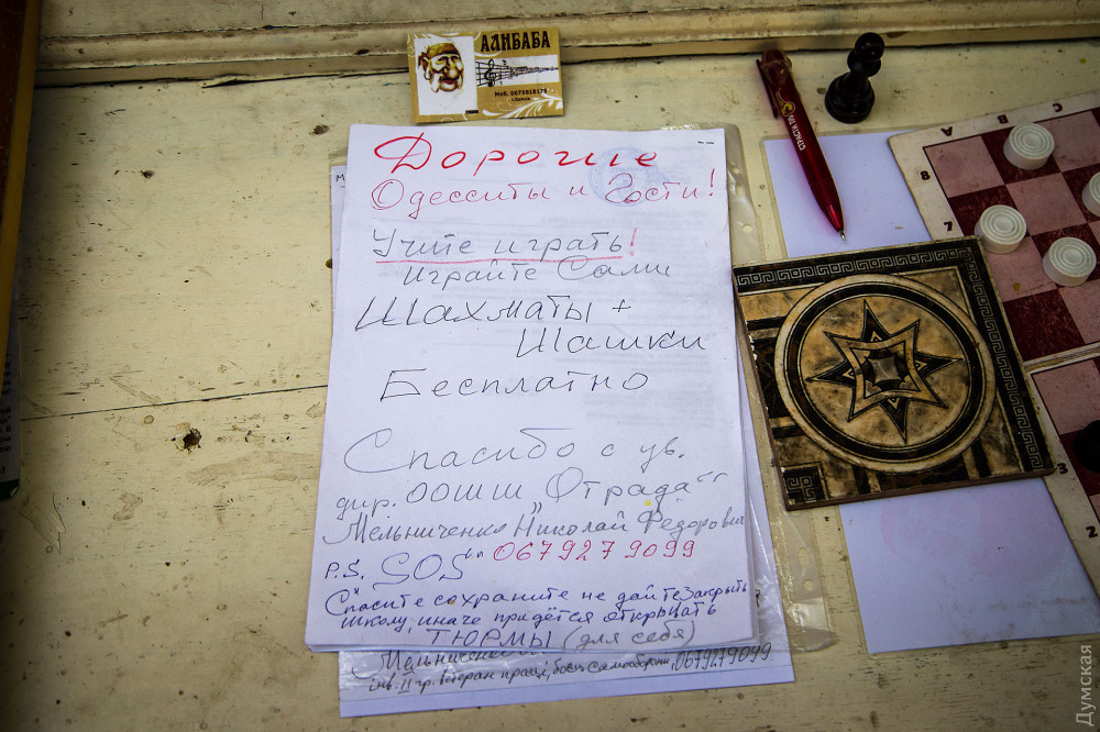 Дом №5, во дворе которого, кстати, вход в катакомбу Кантакузена. В двух шагах — мост Коцебу. Прямо на улице стоит самодельный стол, со столешницей из старой двери. На нем - шахматы и шашки. Единственный преподаватель уличной шахматно-шашечной школы Николай Мельниченко обучит игре любого. За день он отыгрывает больше двадцати партий, одновременно успевая проводить уроки для своих подопечных.