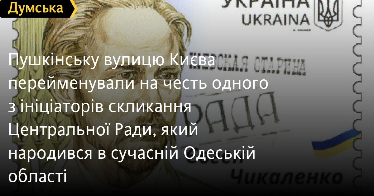 Розташована в Шевченківському районі Пушкінська вулиця тепер носить ім'я діяча Української революції 1917-1921 років, уродженця сучасної Одеської області Євгена Чикаленка.