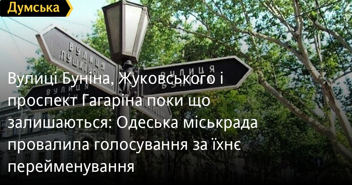 Вулиці Жуковського, Буніна, вулиця і площа Льва Толстого — залишаються з колишніми назвами, передає кореспондент «Думської».