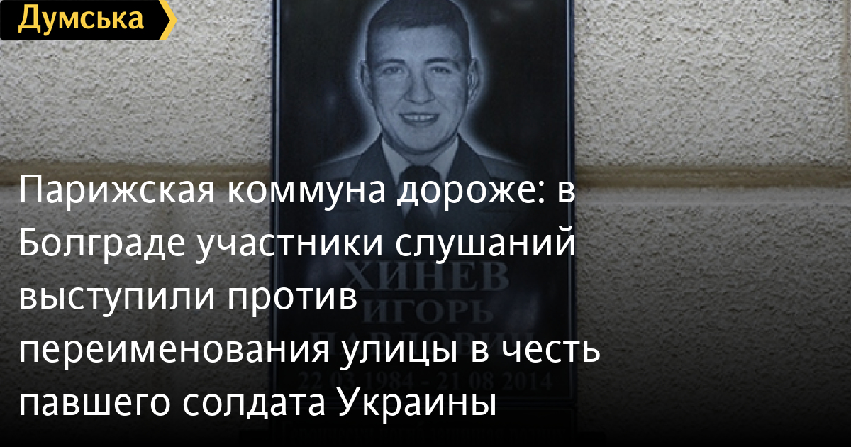 Участники общественных слушаний в Болграде Одесской области выступили против переименования одной из улиц города в честь земляка, старшего солдата Игоря Хинева, павшего смертью героев на востоке Украины.