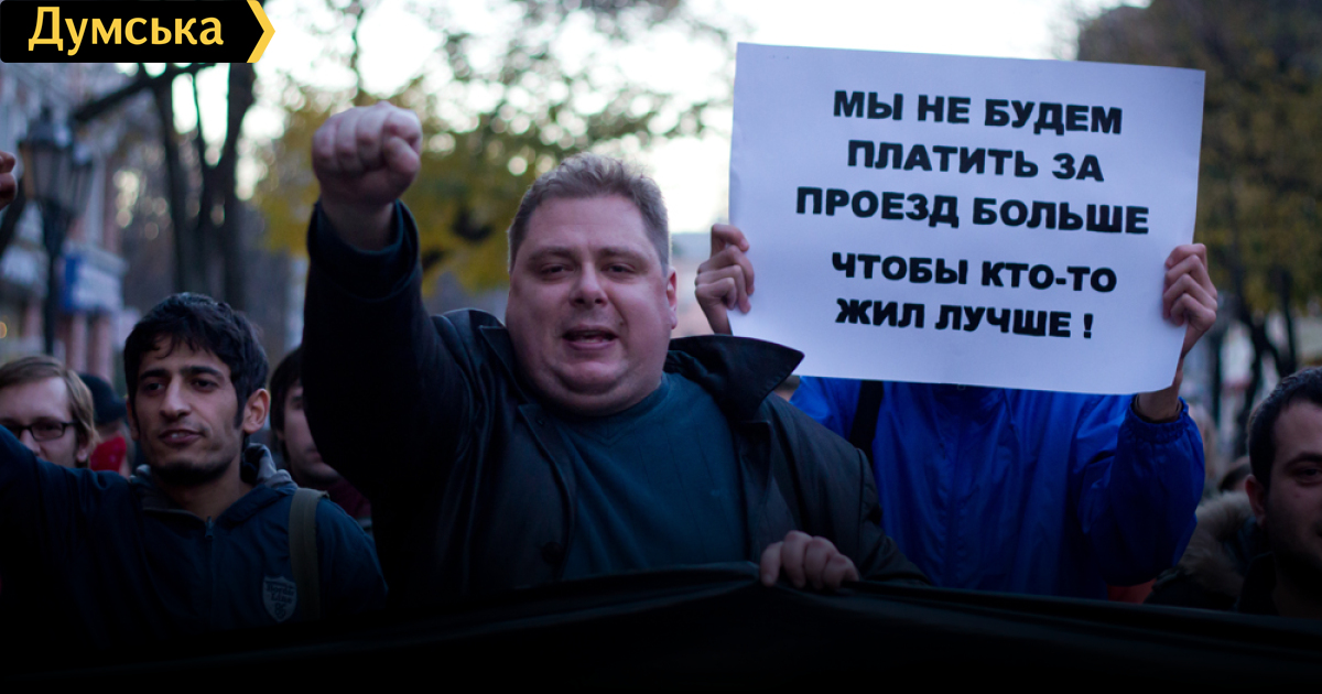 Около 50-ти одесситов — представителей так называемых «новых левых» движений — митинговали сегодня вечером под стенами муниципалитета, протестуя против планируемого повышения цен на проезд в маршрутных такси. В акции участвовали представители организаций «Левая оппозиция», «Боротьба», Революционной конфедерации анархистов-синдикалистов имени Нестора Махно и Рабочей Курдской Партии. Они прошлись по Дерибасовской и Пушкинской прямо к зданию горсовета. Группу «боротьбистов» возглавлял депутат облсовета, экс-член КПУ Алексей Албу, «левую оппозицию» — бывший член либеральной партии «Реформы и порядок» (нынче входит в объединенную оппозицию), сотрудник управления внутренней политики гурвицевских времен Андрей Ищенко. Радикалы скандировали: «Четыре гривны за проезд – давай, до свидания», «За проезд два пятьдесят — хватит цены повышать» и «Костусев, выходи».