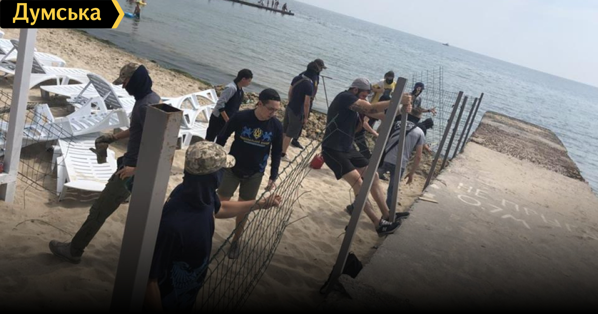 Активисты ультраправой организации «Национальный корпус» демонтировали сегодня забор, который незаконно, по их мнению, установили арендаторы одного из пляжей в Отраде.