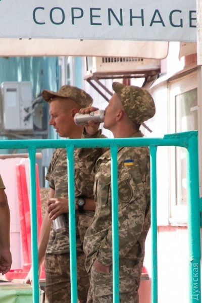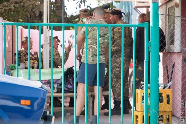 Вскоре подтягиваются на это своеобразное аватар-пати и «випы». У точки, поднимая облако пыли, лихо тормозит выкрашенный в цвет хаки «Фольскваген Пассат» без номеров. Судя по нашивкам, новые посетители «генделыка» — бойцы батальона «Айдар», часть которого расквартирована на «Широком Лане», по соседству с расположением одесской бригады.