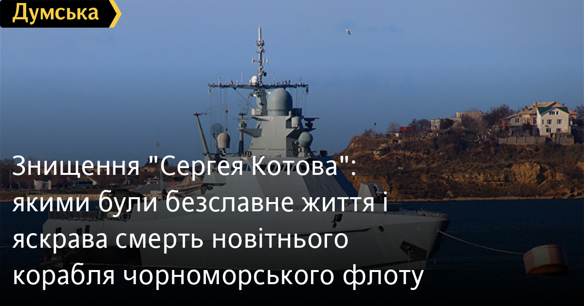 Котов був новітнім кораблем чф рф, і був введений в експлуатацію в липні 2022 року. Минулої ночі він пішов на дно. Ще три таких самих кораблі базуються в окупованих портах Криму, а два - будуються на заводі «Море» в Керчі.
