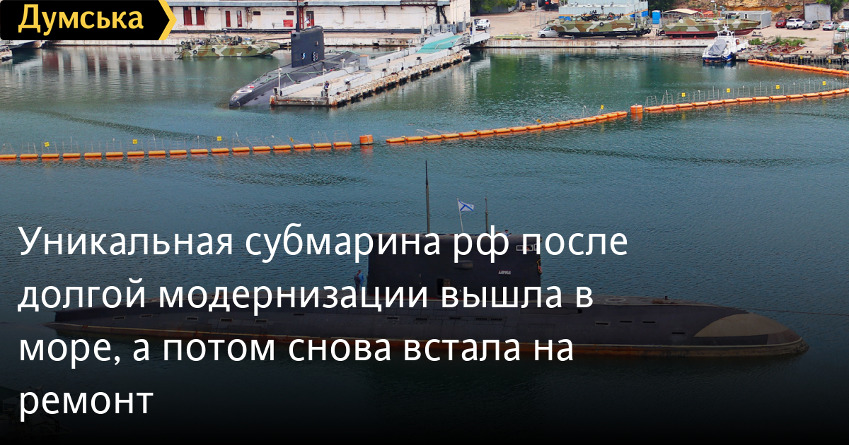 Незадолго до этого оккупанты заявили, что лодка завершила восьмилетнюю модернизацию на 13-м судоремонтном заводе и вернулась в состав флотилии черноморского флота рф.