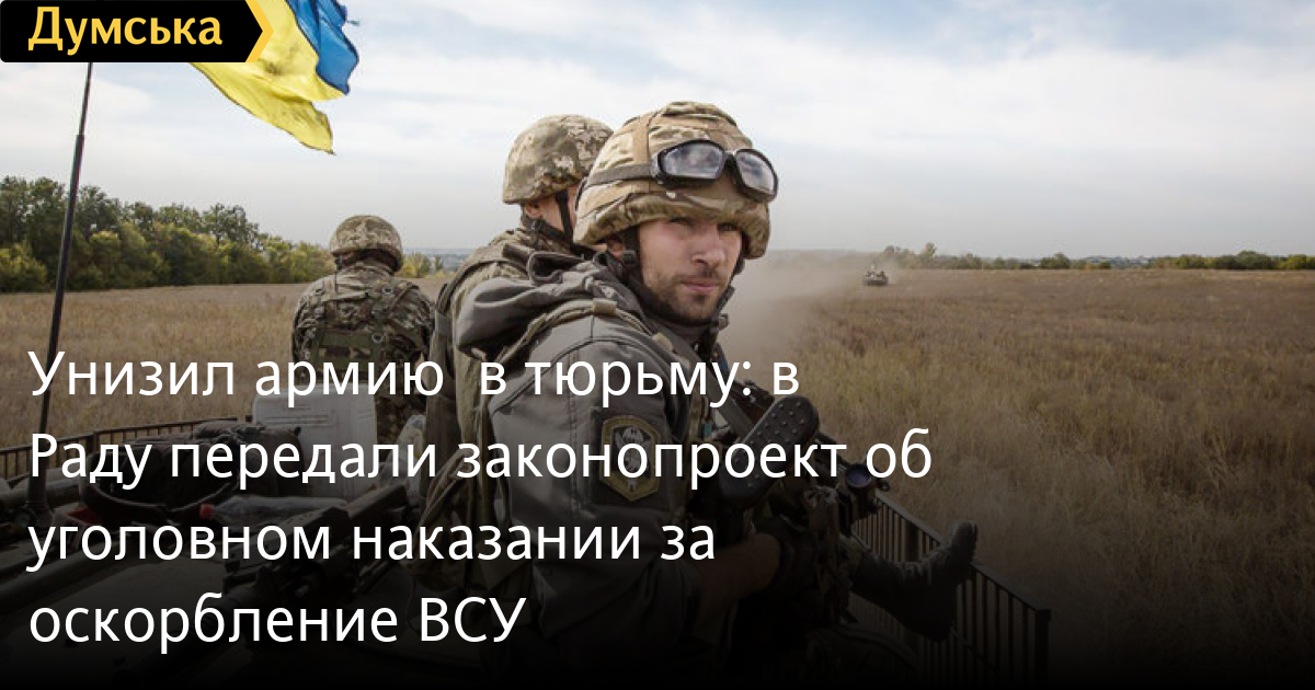 - до двух лет исправительных работ, арест до шести месяцев или до двух лет лишения свободы за действия, порочащие авторитет Украины, или подрывающие честь и достоинство бойцов ВСУ;
