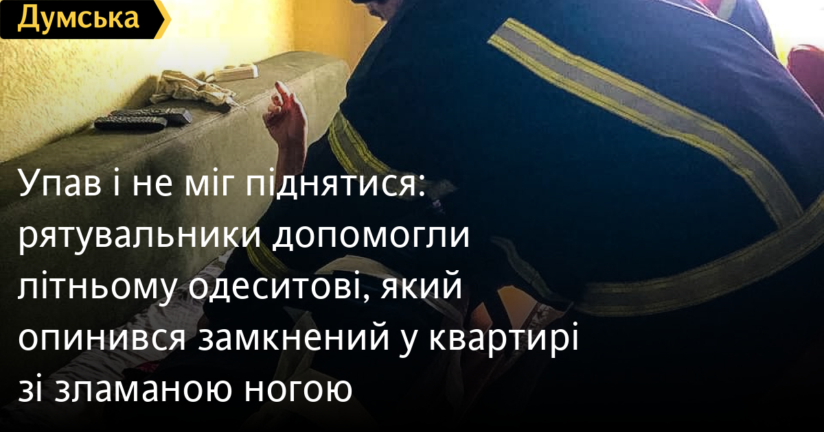 Упав і не міг піднятися: рятувальники допомогли літньому одеситові, який опинився замкнений у квартирі зі зламаною ногою68-річному чоловікові, який лежав зі зламаною ногою на підлозі в замкненій квартирі, допомогли одеські рятувальники. Як розповіли в обласному управлінні ДСНС, до них звернулися поліцейські, яких викликали сусіди пенсіонера. Відчинивши двері за допомогою шанцевого інструменту, рятувальники за допомогою жорстких нош донесли потерпілого з сьомого поверху до карети швидкої. Медики діагностували в нього перелом лівого стегна. Помітили помилку? Виділяйте слова з помилкою та натискайте control-enter |