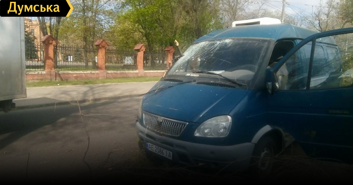 Крупная ветка, отломившаяся с дерева, пробила лобовое стекло микроавтобуса «Газель».