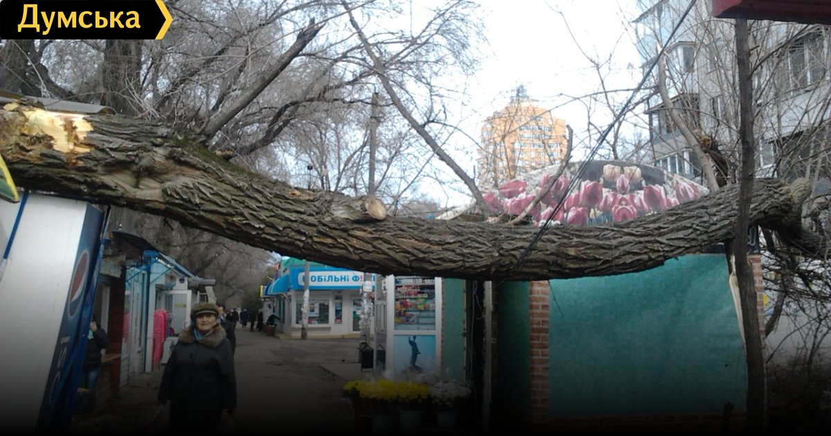 Большой ствол дерева рухнул утром 15 марта на 6-ой станции Фонтана. Как рассказали «Думской» работники рынка, расположенного на перекрестке с Экономическим переулком, инцидент произошел около 6 утра. К счастью, посетителей в это время на рынке мало, и никто не пострадал. «Так рано открываюсь я и цветочный ларек. Поднялся ветер, мы услышали шум. Когда увидели это дерево, очень испугались. Девушка из цветочного уверена, что ее спас холодильник с напитками, на который эта глыба приземлилась», — рассказывает продавец сигаретного киоска. Кроме холодильника, дерево сломало столб уличного освещения и повисло на проводах, питающих рынок. В настоящее время на место происшествия прибыли коммунальщики, которые распиливают крупные ветки. «Скоро должны приехать электрики – смотреть, что с этими проводами», — говорят торговцы. СМЕРТЬ РОСІЙСЬКИМ ОКУПАНТАМ! Помітили помилку? Виділяйте слова з помилкою та натискайте control-enter |