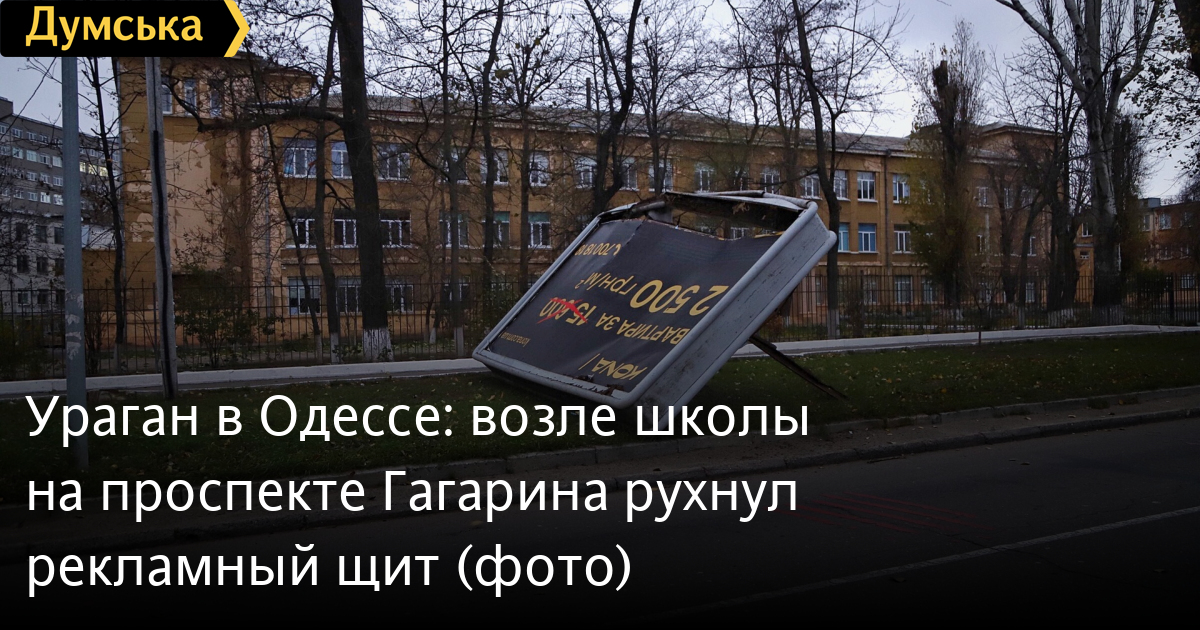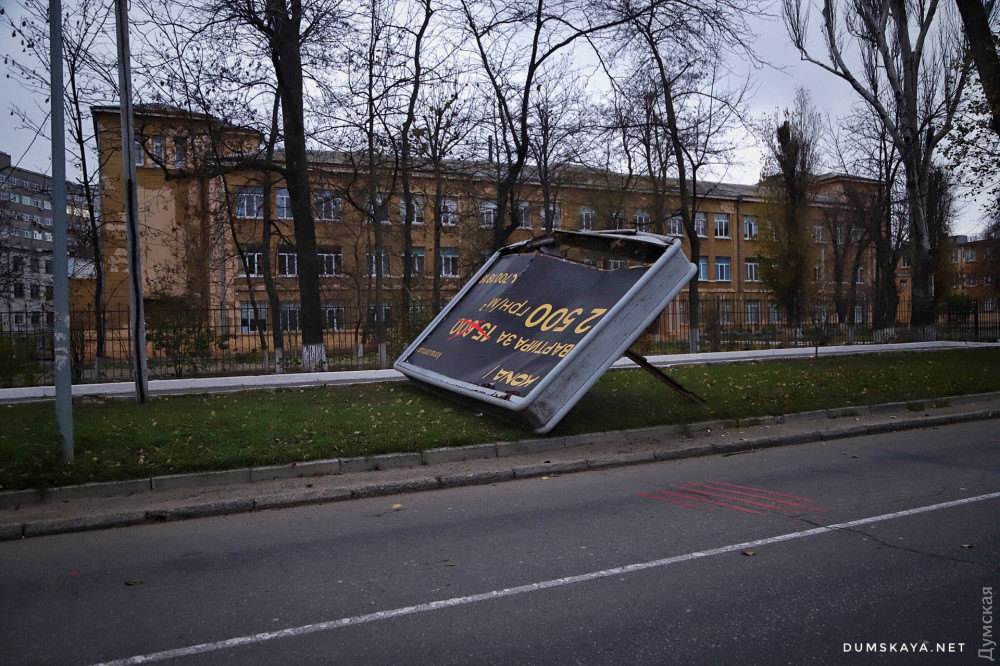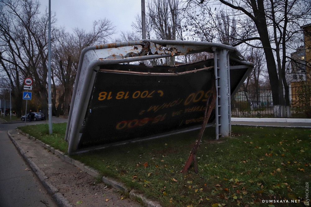 Из-за сильного ветра на проспекте Гагарина между проспектом Шевченко и Французским бульваром рухнула рекламная конструкция.