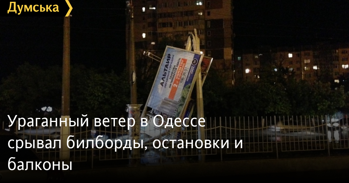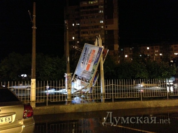 Ураган, который пронесся сегодня вечером над Одессой, повредил рекламные щиты в разных районах города. Как передают корреспонденты «Думской», из-за сильного ветра упал рекламный щит на улице Ильфа и Петрова в районе улицы Вильямса, возле супермаркета «Таврия-В Вузовский» билборд упал на машину. Также несколько рекламных конструкций повалены в районе торгового центра «Ривьера».