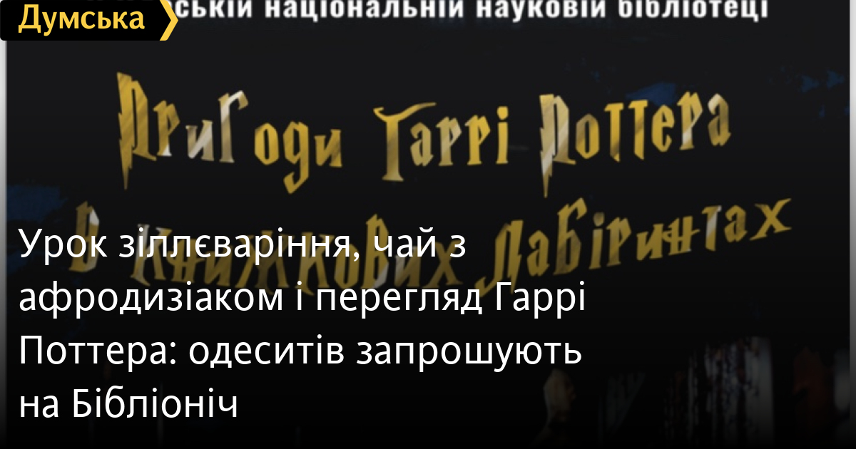 Урок зіллєваріння, чай з афродизіаком і перегляд «Гаррі Поттера»: одеситів запрошують на БібліонічСьома велика Бібліоніч відбудеться 14 лютого в Одеській національній науковій бібліотеці. Гостям обіцяють насичену програму під назвою «Пригоди Гаррі Поттера в книжкових лабіринтах». Зустрічатимуть усіх шанувальників книг персонажі Поттеріани. Разом із ними можна буде взяти участь у благодійній акції «Порадуй Герміону — подаруй бібліотеці книжку» та ярмарку «Лавка Оллівандера», а також попрактикувати англійську, подивившись «Гаррі Поттер і філософський камінь» мовою оригіналу. Також на учасників свята чекає ворожіння від професора Трелоні, урок зіллєваріння «Магія трав і народної вишиванки», концерт «Чари мистецтва» від Одеської філармонії та майстер-клас зі створення амуртензії «Феєрія ароматів». Гості зможуть скуштувати чаї з афродизіаком і настоянки для здоров'я, зробити знімки на пам'ять у фотозонах «Час пригод у бібліотеці» і «Магічні селфі-сходинки», узяти участь у майстер-класі з виготовлення флікерів-закладок для книг від одеської патрульної поліції. Також у програмі літературні вікторини, квізи, квести, книжкова виставка-інсталяція «Книжкова Love Story» та багато інших активностей. Початок Бібліоночі о 17:00. Помітили помилку? Виділяйте слова з помилкою та натискайте control-enter |