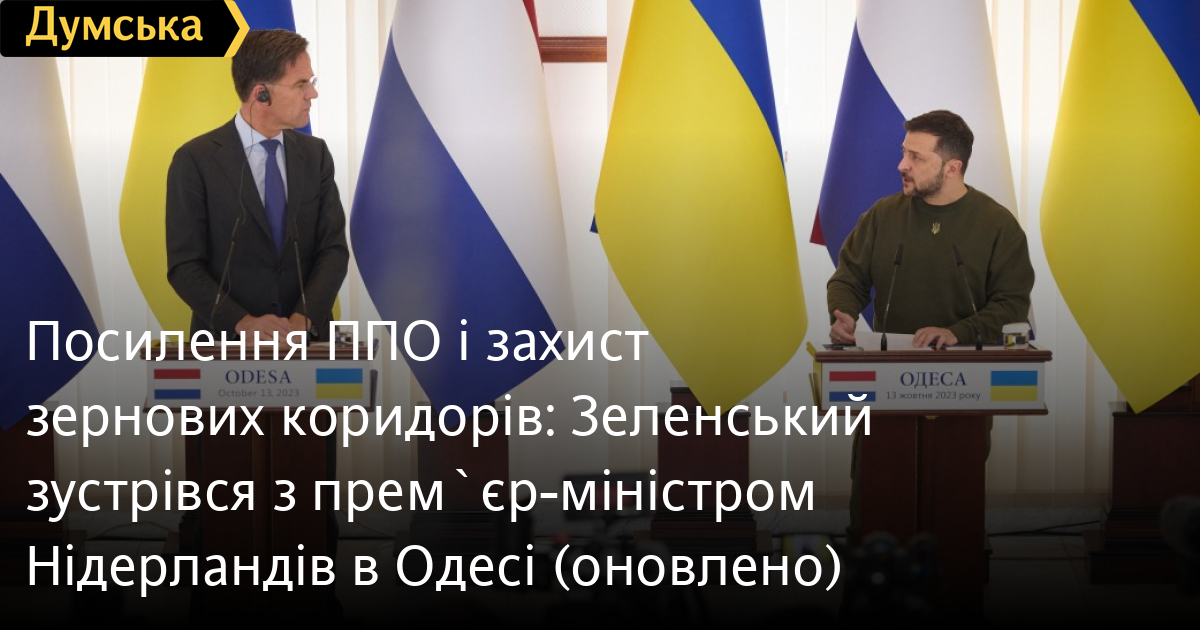 Посилення протиповітряної оборони, захист зернових коридорів і передача Україні F-16 — ці питання обговорили на зустрічі в Одесі президент України Володимир Зеленський і прем'єр-міністр Нідерландів Марк Рютте.
