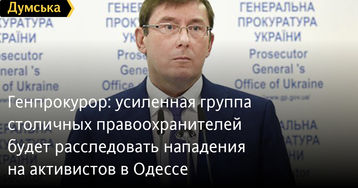 В связи с участившимися нападениями на активистов в Одессе для проведения расследования из Киева вылетела усиленная группа правоохранителей. Об этом на своей странице в «Фейсбук» сообщил генеральный прокурор Украины Юрий Луценко.