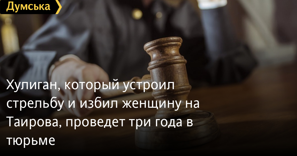 Хулиган, который устроил стрельбу и избил женщину на Таирова, проведет три года в тюрьмеК трем годам и одному месяцу лишения свободы приговорил Киевский районный суд Одессы 25-летнего жителя Балтского района, который в позапрошлом году устроил стрельбу и драку на проспекте Небесной Сотни. В настоящее время мужчина находится в следственном изоляторе по другому делу: 5 июня 2019 года его приговорили к трем годам колонии за разбойное нападение. Время, уже проведенное им за решеткой, зачли в срок отбытия наказания. Инцидент, о котором идет речь, произошел в октябре 2018 года. Злоумышленник устроил ссору с семейной парой, которая вечером прогуливалась по проспекту. Не желая вступать в конфликт с агрессивно настроенным незнакомцем, супруги попробовали уйти. Правонарушитель догнал их, выстрелил в воздух из самозарядного стартового пистолета и заломил мужчине руку. А когда женщина начала звать на помощь полицию, ударил ее кулаком в лицо. Правоохранители начали уголовное производство по части 4 ст. 296 УК Украины (хулиганство с использованием огнестрельного оружия). На суде свою вину гражданин признал полностью и попросил рассмотреть дело в упрощенном порядке, без изучения доказательств, что и было сделано. СМЕРТЬ РОСІЙСЬКИМ ОКУПАНТАМ! Помітили помилку? Виділяйте слова з помилкою та натискайте control-enter Новини по цій темі: 29 липня 2025: В Усатово Одеської області сталася перестрілка: поліція працює на місці (відео, оновлено) 28 липня 2025: П'яний на "Ягуарі" або гіпертонік? Звільнений топ-посадовець одеської поліції хоче повернутися на службу 19 червня 2025: Дівчинку, яку шукали сотні одеситів, знайшли вбитою: поліція працює з чоловіком, ймовірно причетним до загибелі 27 травня 2025: Увели гектар в університету: на Одещині засудили земельних аферистів, але без посадки і Хвоста |