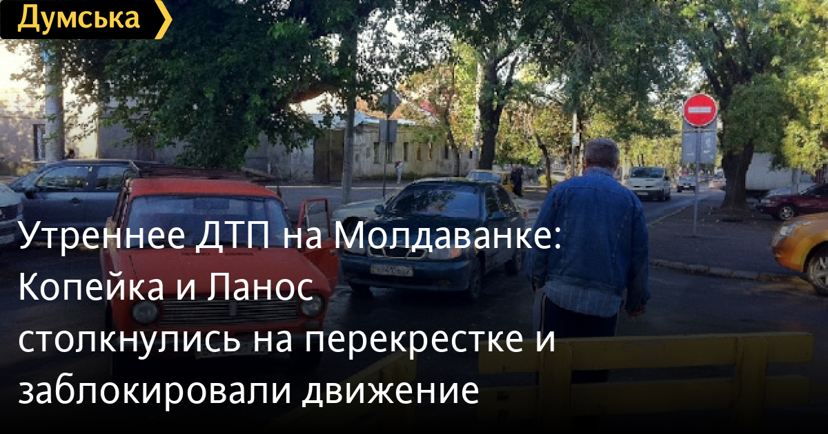 Утреннее ДТП на Молдаванке: «Копейка» и «Ланос» столкнулись на перекрестке и заблокировали движениеСегодня, 20 сентября, в 8:40 на Молдаванке в Одессе произошло ДТП из-за которого было заблокировано движение. Как сообщают «Автоновости», ВАЗ-2101 и «Дэу Ланос» столкнулись на перекрестке улиц Раскидайловской и Серова. Спровоцировал аварию водитель «Жигулей», который выезжал со стороны улицы Серова. Он не пропустил «Дэу», двигавшийся по главной дороге через перекресток. Оба автомобиля повреждены, водители не пострадали. Указанный перекресток нерегулируемый и считается местом повышенной аварийности, поскольку при повороте с улицы Серова на Раскидайловскую ограничен обзор проезжей части. СМЕРТЬ РОССИЙСКИМ ОККУПАНТАМ! Заметили ошибку? Выделяйте слова с ошибкой и нажимайте control-enter |