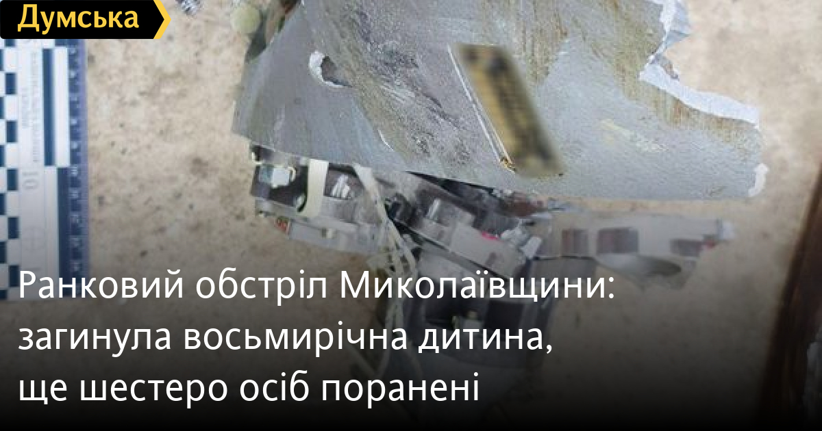 Ранковий обстріл Миколаївщини: загинула восьмирічна дитина, ще шестеро осіб пораненіВосьмирічна дитина загинула, а ще шість осіб поранені через вранішні обстріли Миколаєва. Загалом, станом на 3 вересня, в миколаївських лікарнях знаходяться 577 осіб, що постраждали від атак окупантів, повідомляє голова облради Ганна Замазєєва. Під удар потрапили населені пункти Миколаївського та Баштанського районів. Також вночі вибухи чули у Вознесенську. Окрім артилерійських обстрілів, зафіксовані бомбардування з літаків. Атаковані населені пункти Первомайської, Широківської та Березнегуватської громад. Зафіксовані пошкодження житлових будинків та господарських будівель. В результаті обстрілів сталися пожежі. «Сьогоднішній ранок, взагалі, важкий. Обстріли продовжуються. На жаль, є постраждалі. 2 поранених у місті Миколаєві, 4 - у Березнегуватому. Серед поранених — двоє дітей. На жаль, є і загиблі — 8-річна дитина. Щирі співчуття рідним», — написала Замазєєва. СМЕРТЬ РОСІЙСЬКИМ ОКУПАНТАМ! Помітили помилку? Виділяйте слова з помилкою та натискайте control-enter |