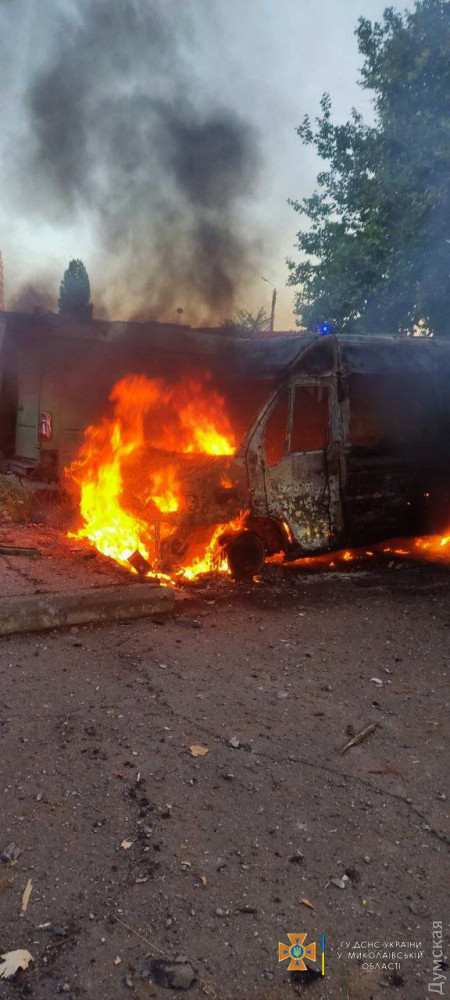 Через обстріл на одному з підприємств Миколаєва вигорів ущент автомобіль «Газель», повідомляють рятувальники.