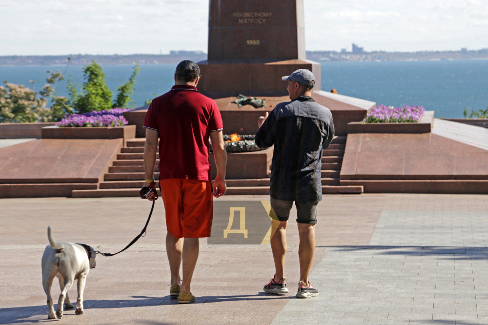 В Одессе же нет никакого официоза. У памятника происходит обычная суета — проносятся велосипедисты, одесситы гуляют, занимаются спортом и выгуливают своих питомцев.