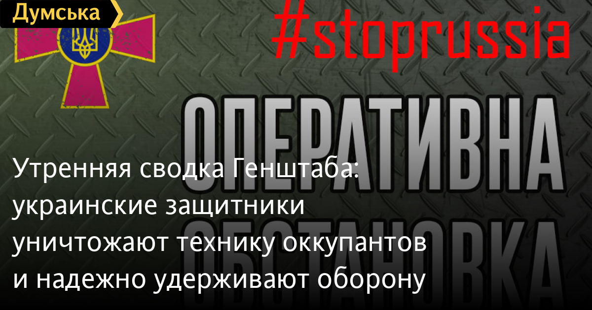 Как сообщается в утренней сводке Генштаба, за минувшие сутки украинские защитники отбили девять вражеских атак, уничтожили 12 танков, около 20 единиц бронированной и автомобильной техники и девять артиллерийских систем. Противник потерял более 200 военнослужащих. Подразделениями противовоздушной обороны сбиты два самолета и два БПЛА врага.