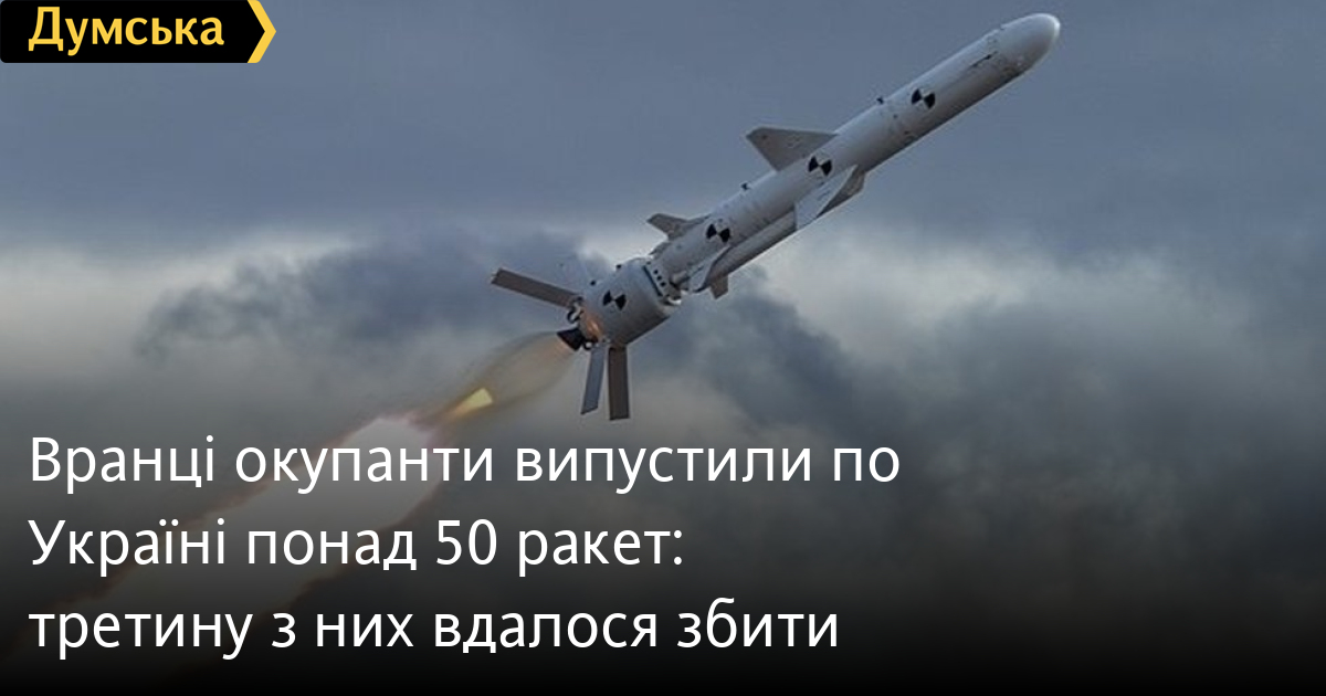 Масований ракетний удар із застосуванням 51 ракети завдав противник зранку по території України.