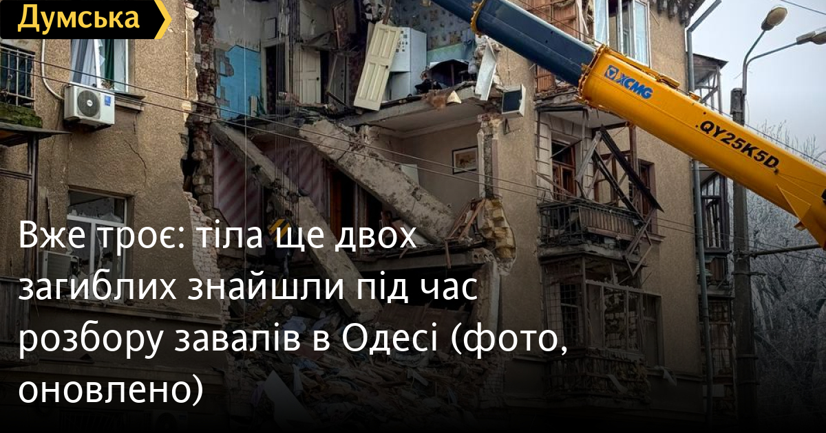 Вже троє: тіла ще двох загиблих знайшли під час розбору завалів в Одесі (фото, оновлено)Тіло загиблого чоловіка знайшли рятувальники під час розбору завалів будинку на Прохоровській, куди влучив ворожий «шахед» під час нічної атаки. Про це повідомив глава МВА Сергій Лисак. Нагадаємо, що раніше загиблого чоловіка знайшли під час розбору завалів будинку на Балківській. Сусідки розповіли, що це був літній чоловік, який жив один. Нагадаємо, за попередньою інформацією під завалами може бути всього троє людей. Пошуково-рятувальна операція триває. В результаті нічної атаки постраждали 35 осіб, 12 з яких госпіталізовані. Пошкоджені також житлові будинки, навчальні заклади, церква та енергооб'єкт. ОНОВЛЕНО о 14:58. Як повідомив кореспондент «Думської», на Прохоровській з-під завалів деблокували тіло загиблої жінки. Таким чином, на даний момент в місті вже троє жертв нічної атаки. СМЕРТЬ РОСІЙСЬКИМ ОКУПАНТАМ! Помітили помилку? Виділяйте слова з помилкою та натискайте control-enter |