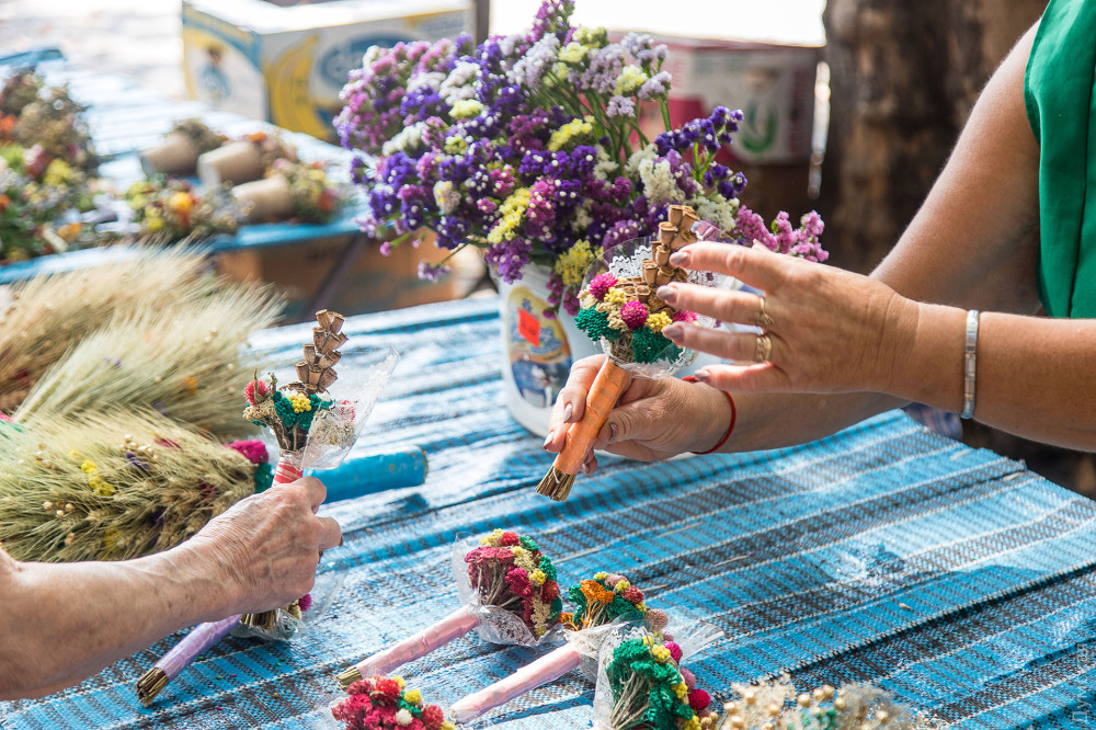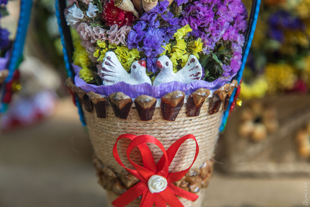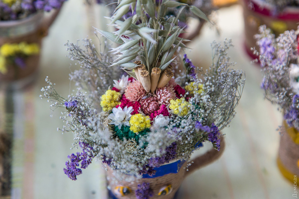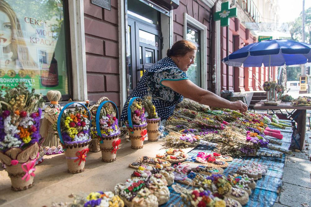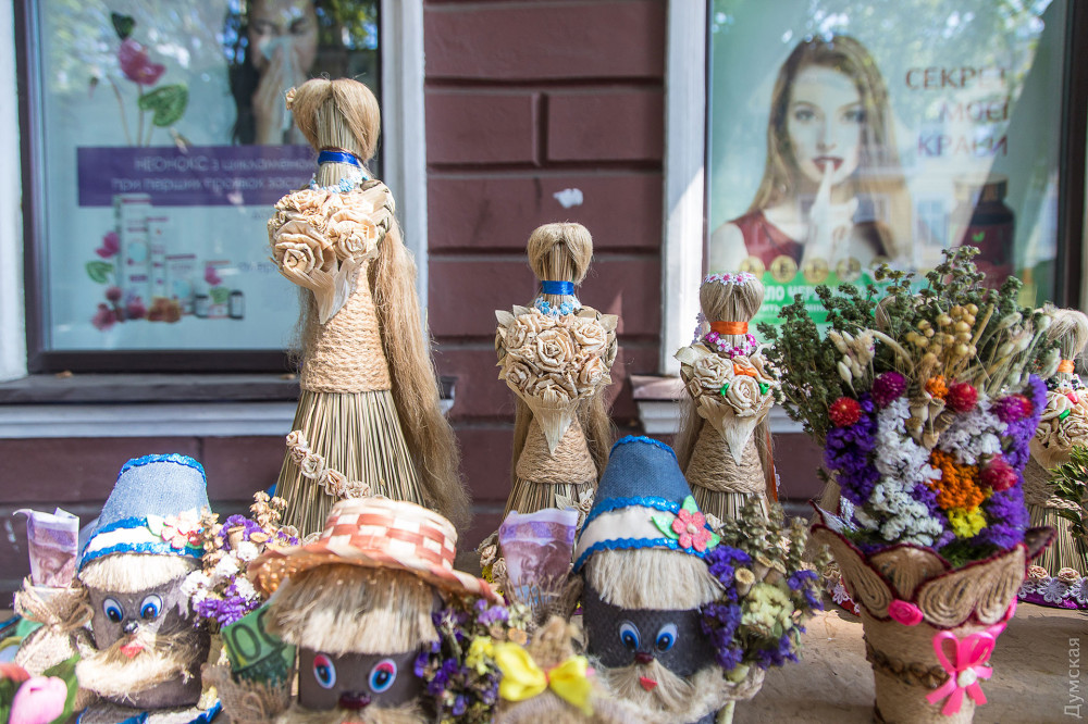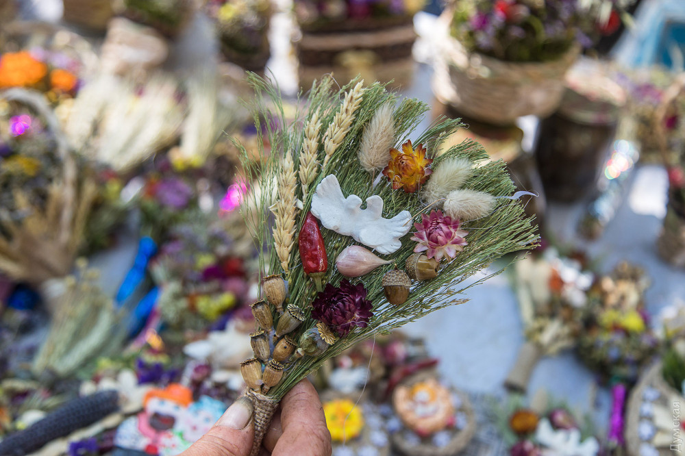 На Пушкінській, біля Свято-Іллінського чоловічого монастиря, можна купити оберіг на будь-який смак — майстрині комбінують сухостій у дивовижній красі вироби: вінички, букети, плетені постоли та ляльки. Найменший оберіг обійдеться у 20 гривень, 50-сантиметровий віник, прикрашений всілякими злаками та фігурками з гіпсу – у 150 грн. Ближче до храму дівчина продає мед, зібраний її родичем, дияконом невеликої каплички на Тінистій.