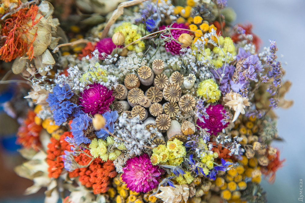 Купити головний символ дня, так звану «маковійську квітку» — букет із чебрецю, чорнобривців, рути, м'яти, волошок, світ-трави, деревію, жовтого безсмертника і (обов'язковий компонент) маку можна вже сьогодні – продавці святкової атрибутики заздалегідь з'явилися біля міських храмів, передає кореспондент «Думської».