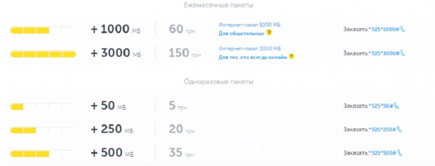 Как рассказали в пресс-службе «Киевстар», абоненты любых тарифных планов могут пользоваться скоростным мобильным интернетом без замены SIM-карт или каких-то специальных настроек. Главное — чтобы телефон поддерживал эту технологию. Также компанией разработан целый ряд новых тарифных планов, которые специально ориентированы на пользователей современных интернет-технологий. Абоненты архивных тарифных планов могут переключиться на новые коммерческие предложения или пользоваться услугами сети 3G по условиям их текущего тарифного плана. Также есть возможность дополнительно подключать интернет-пакеты объемом от 50 до 3 тысяч мегабайт – Ееемесячные или одноразовые.