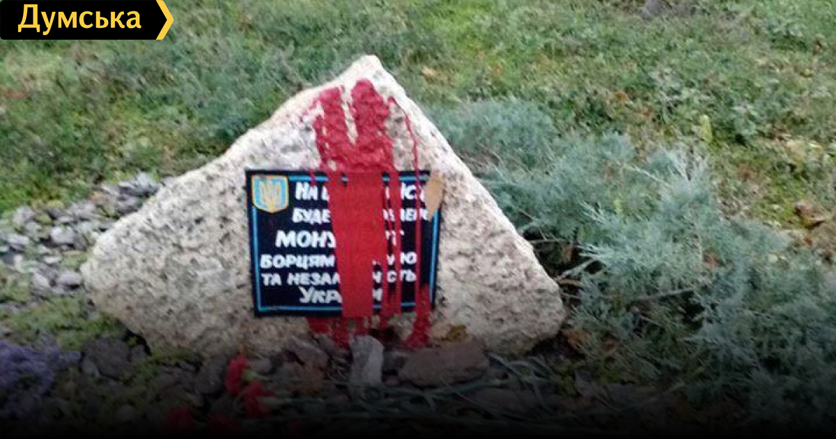Неизвестные облили его красной краской, сообщила мэр города Алла Гинак.